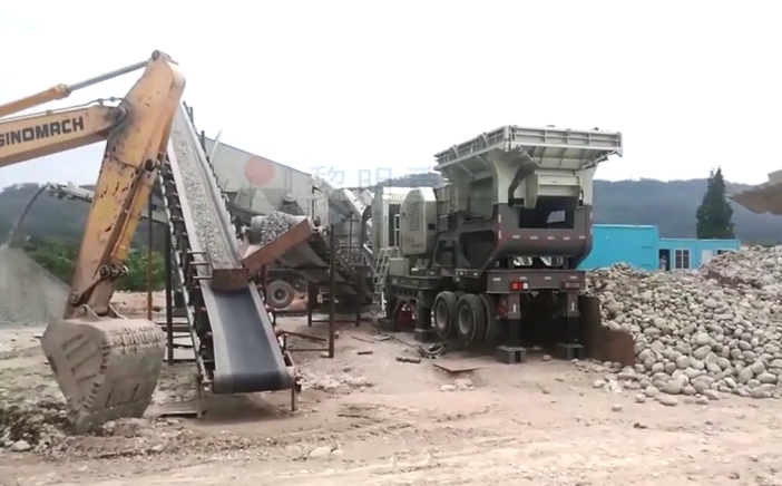 移動破碎站主要有給料系統(tǒng),破碎系統(tǒng),振動篩分系統(tǒng)和洗滌系統(tǒng)組成。